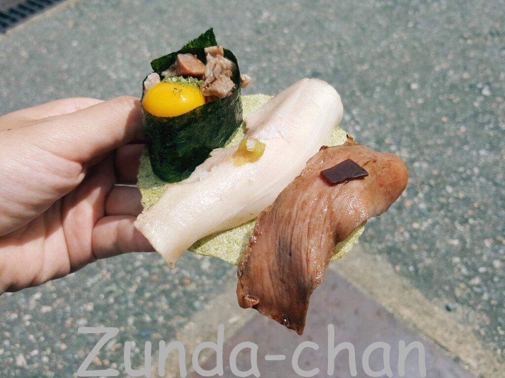 - No.3 飛騨牛にぎり処 おけさ 飛騨の至福三種盛 Hida Beef Nigiri Take Away Shop “Okesa” Assortment of 3 Kinds of Hida
