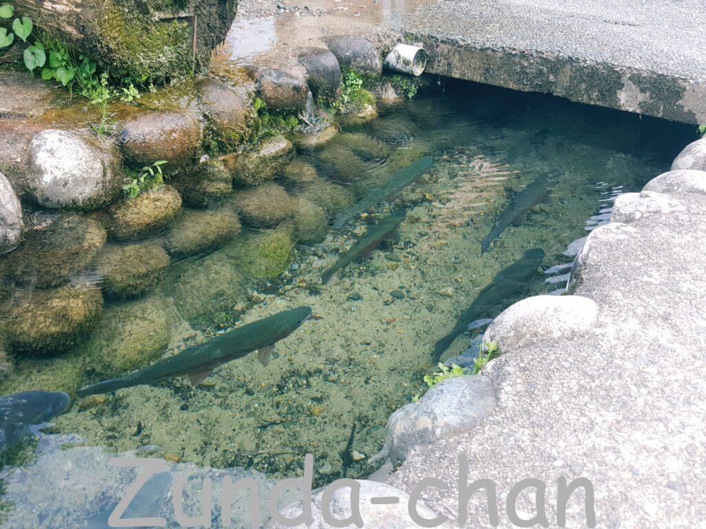 The water is very transparent and very “thick”, and the water is overflowing here and there. In the stream that flows right next to the houses, the fish are leisurely swimming…I was so surprised and touched!! While looking at the beautiful water, I was mesmerized..