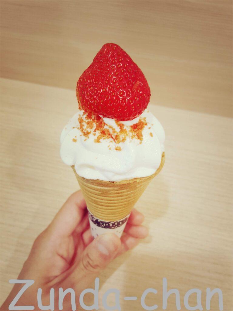 On the morning of the last day, I wandered around the Sapporo city and took a detour to the market…I found a cute soft serve ice cream! A whole strawberry is delicious with a refreshing sweetness!